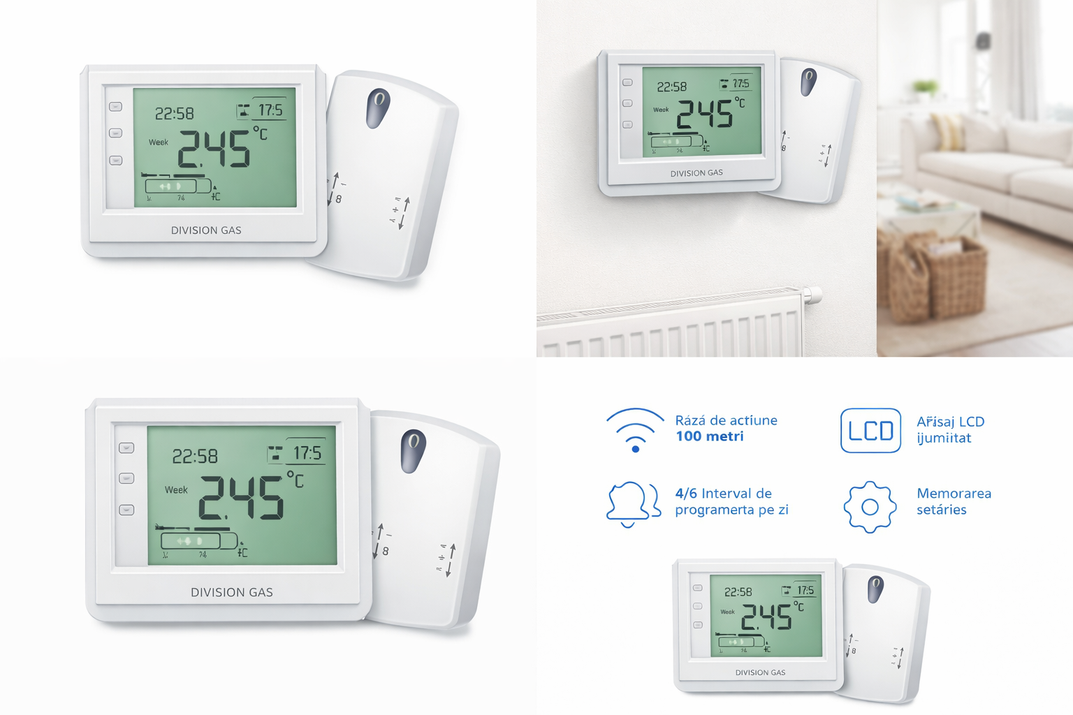 - Comunicare wireless intre termostat si receptor pentru instalare mai usoara.